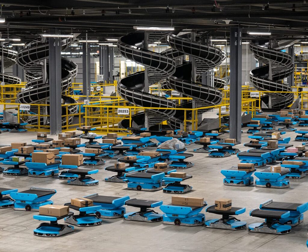 [Here is an image of Amazon Robots in one of their warehouses]
