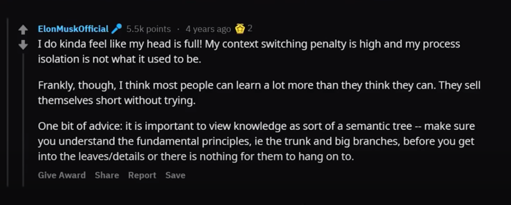 On a reddit AMA (Ask me Anything) Elon shared thoughts about learning:
